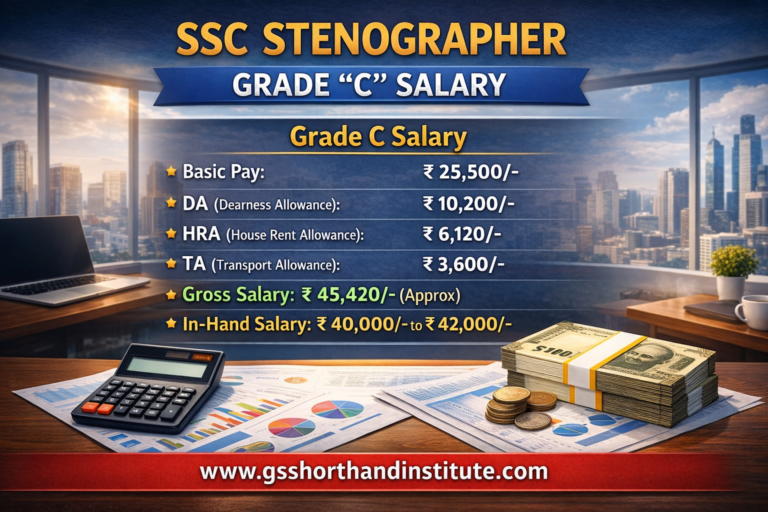 For students preparing for stenography courses, understanding the SSC Stenographer Grade C salary helps in setting clear career goals. Many candidates enroll in professional shorthand and typing courses to meet SSC standards. A structured course improves speed, accuracy, and confidence, which directly impacts selection chances.